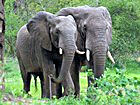 ![]() Bateleur Eagle copyright © South African tourism General info,... The variety of Flora that can be found in the Bateleur camp region, includes the Natal Mahogany tree, Brack Thorn Mustard Tree, Sausage Tree, Apple Leaf, Mixed Bushwillow, Silver Cluster Leaf, Round Leafed Teak, Buffalothorn, Sycamore Fig, Magic Guarri, Marula, Jackalberry, Leadwood, Mopane, Wilddate Palm, Weeping Boer Bean, reeds and mixed Acacias. ![]() Game viewing hide at the camp Bateleur Camp, Place of the Bateleur Eagle, Kruger National Park copyright © SANparks Bateleur camp offers excellent game viewing. In addition to a floodlight that has been fitted for nocturnal viewing, there is a game viewing hide inside the camp, overlooking a permanent waterhole and quite often you can see Elephants enjoying a bath. Animals often to be seen around Bateleur include the Eland, Nyala, Elephant and the rare Tsessebe, an attraction for anyone interested in the shy antelope species. ![]() Baobab tree at sundown near the camp Bateleur Camp, Place of the Bateleur Eagle, Kruger National Park copyright © South African tourism Two dams, Silwervis and Rooibosrand, are within close range of the camp and are restricted to the residents of Bateleur camp. They offer a large variety of game to be spotted, including Hippo, Crocodile, Bushbuck and Nyala along with fantastic birdlife and you may well be rewarded by spotting one of the "Big 5". Other species to look for in this area are Blue Wildebeest (Gnu), Burchell's Zebra, and Buffalo amongst others. The rest camps in the Kruger National Park in general offer superb birding opportunities. The advantage of the bushveld camps including Bateleur camp is that there is less disturbance in the area by other visitors. Silvervis dam in particular is a great spot for birders, with spectacular birdlife all year round. Species to look for are the Greater Painted Snipe, the White-backed Duck, the Osprey and of course the Bateleur Eagle to name but a few. <<< Top of Page Map,... ![]() Pair of Elephant bulls Bateleur Camp, Place of the Bateleur Eagle, Kruger National Park Photograph by Arno Meintjes Go to SANParks.org to view a map of the Kruger National Park showing the locationof Bateleur camp, then click on the map to enlarge. Go to SANParks.org to view a map of the Bateleur bushbeld camp showing the lay out of the camp itself, then click on the map to enlarge. <<< Top of Page Facilities,... ![]() Game drive and Leopard encounter copyright © South African tourism The Bushveld camps in the Kruger National Park have been kept small and intimate, offering guests a private and exclusive bushveld experience. Facilities are limited to those necessary for a small group of people. These include Information and Reception, Public Telephones, and a Mini-shop stocking basic items such as firewood, ice and phone cards, but no food. Major camp facilities are available at the nearest main rest camp, which is Shingwedzi. The information desk at the reception of the camp can give you detailed information about all the facilities available, which include the following;