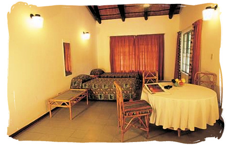 The accommodation of the rest camp consists of caravan and camping sites, fully equipped semi-luxury safari tents (cooking, shower and toilet), bungalows and family cottages (all with air-conditioning). The two family cottages secluded by vegetation are situated in a high-lying part of the camp. Further down the hill are two terraces of charming, white washed bungalows, equipped with self-catering facilities. All units are serviced daily and supplied with bedding, towels and soap.